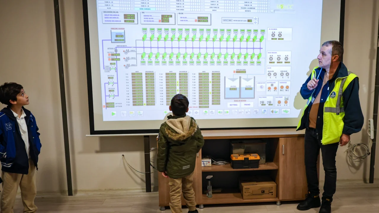 Minikler suyun kaynaktan arıtma tesisine ulaştırılmasını, arıtma basamaklarını ve şebekeye iletilme sürecini yerinde gözlemledi. Düzenlenen eğitimde suyun korunması ve tasarrufun önemine vurgu yapıldı. Tesis uzmanlarından bilgiler alan öğrenciler, suyun fiziksel ve kimyasal arıtma süreçlerini adım adım inceledi. Arıtılan suların laboratuvar ortamında gerçekleştirilen kalite kontrollerine dair uygulamaları heyecanlatakip ettiler.